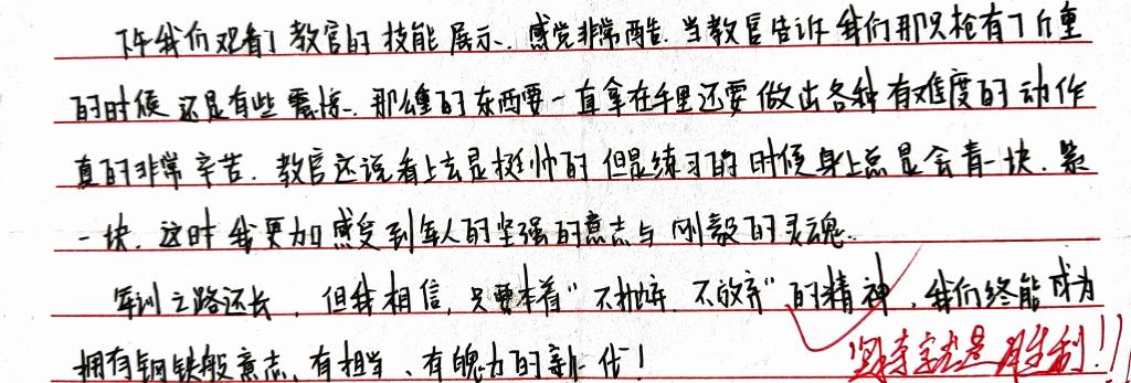 看看这十几天军训生活中,教官与班助们哪些话给大家留下了深刻印象,让大家都想写到军训日记里记录下来。