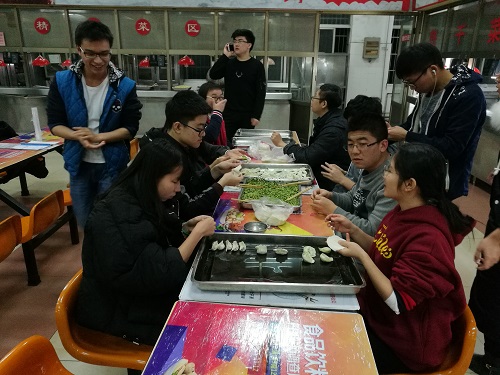 26日下午五点,“报恩”环节开始进行,这一部分以包饺子为主线,让同学们把亲手包的饺子送给身边的人,以实际行动进行报恩。首先,同学们准备好了四种不同美味的饺子馅,由会包饺子的同学负责教同学们包饺子。紧接着开展了紧张有趣的包饺子大赛,在这个环节里,大家热情高涨,每个人都积极参与到包饺子大赛中。最后,大家都吃上了其他同学包的热气腾腾的饺子,并在班委的组织下,同学们将一部分包好的饺子送给了宿舍阿姨和食堂师傅,感谢他们辛苦的付出。