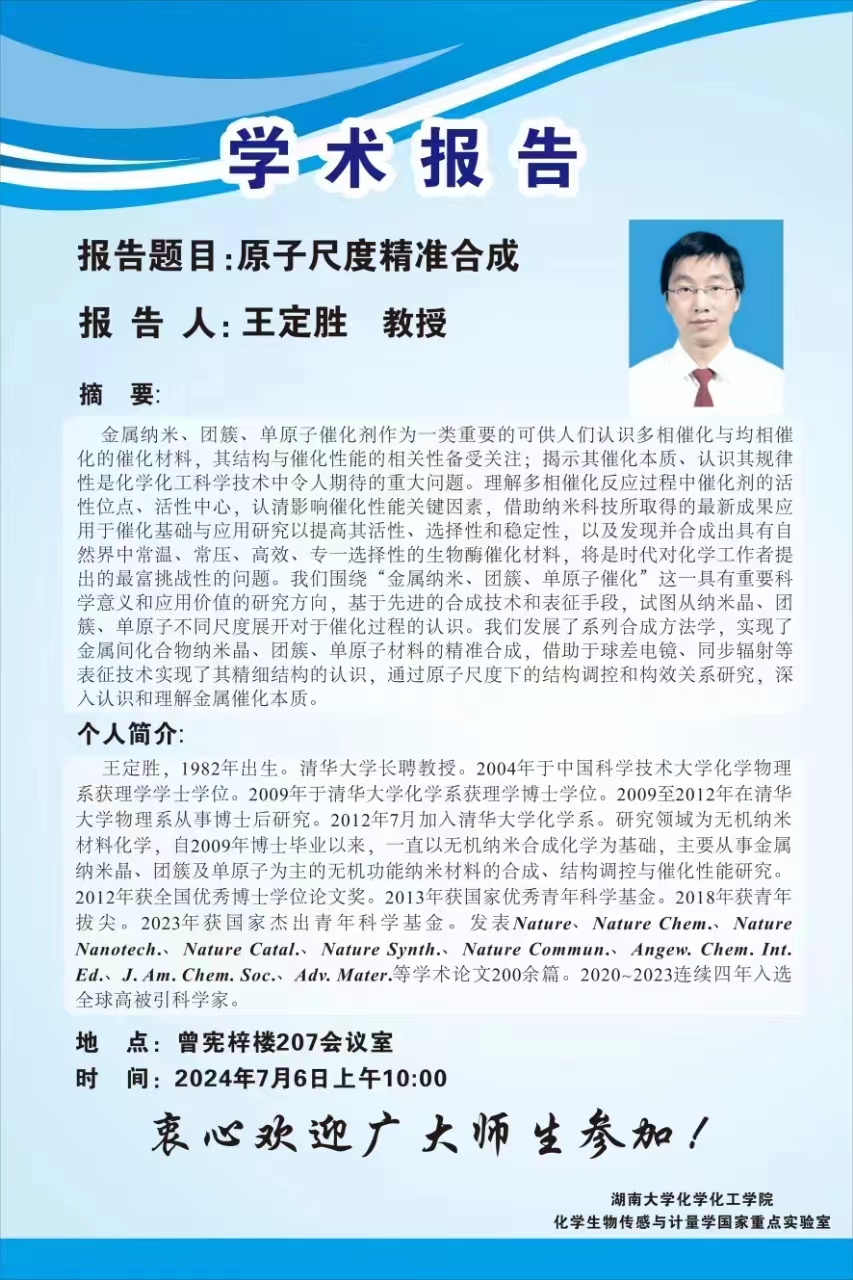 2024年7月6日清华大学王定胜教授学术报告会