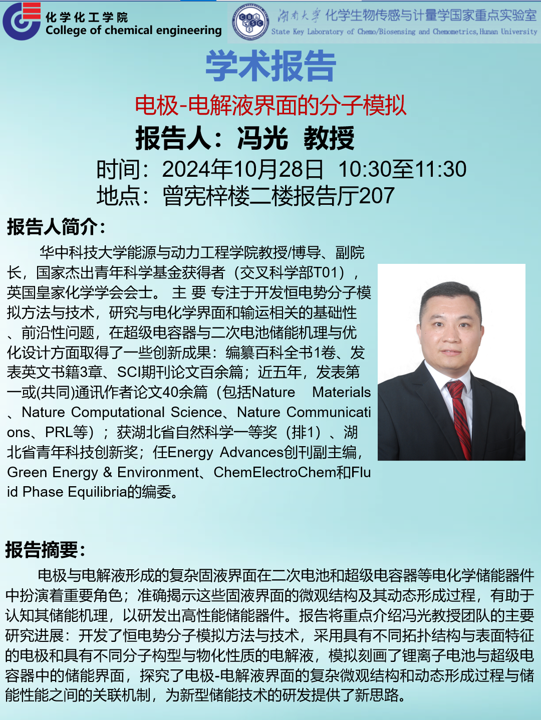 2024年10月28日华中科技大学冯光教授学术报告会