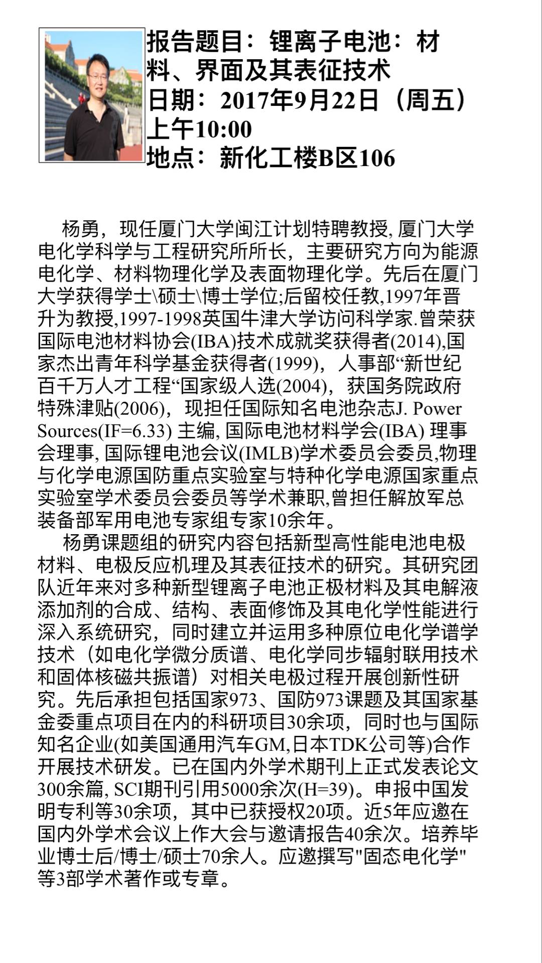 2017年9月22日厦门大学杨勇教授学术讲座